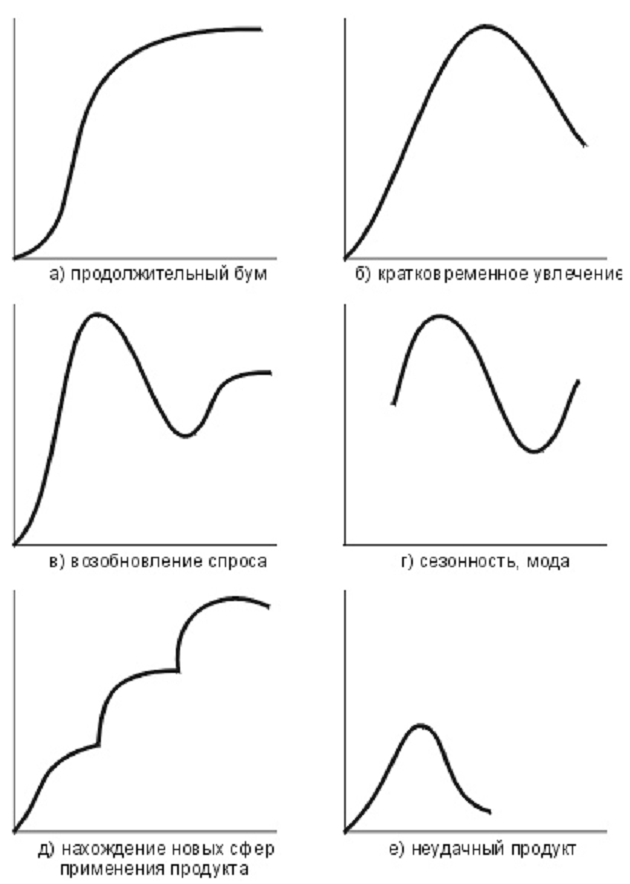 периоды внедрения, роста, зрелости, насыщения и спада.