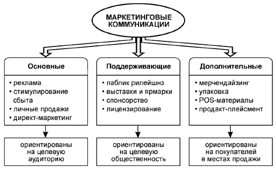 Маркетинговые коммуникации можно разделить на