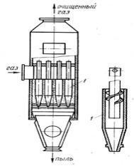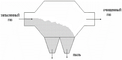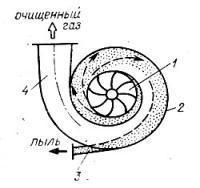 через выходное отверстие. Выпавшая из газопылевого потока пыль накапливается