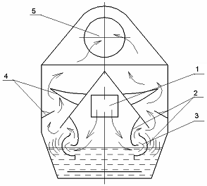конфузор; 2 - горловина; 3 диффузор; 4 - циклон;5 - инерционный пылеуловитель;