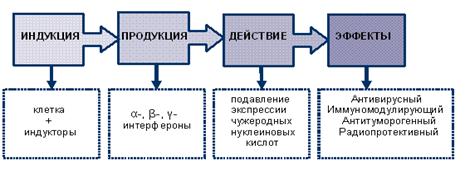 - синтез клетками ИФН альфа-, бета-, гамма- и других типов и секреция их в окружающую