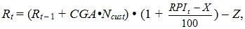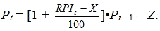 - изменение числа потребителей; X- фактор эффективности; Z - поправка на