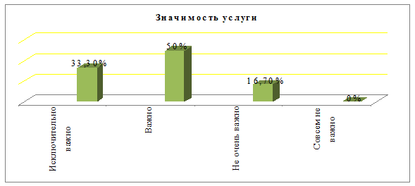 ПП 1-С ,проведен анализ оценки значимости услуги. Большая часть опрошенных ,