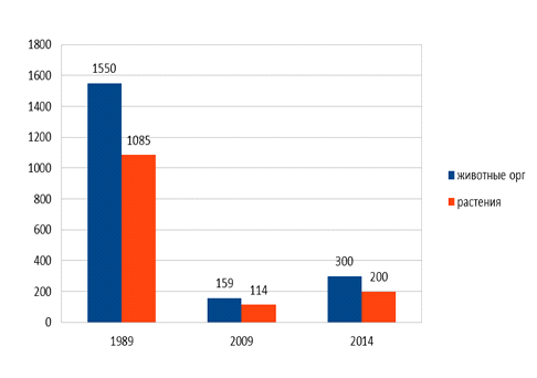 животных и растительных организмов возросло. Но все же значительно меньше, чем