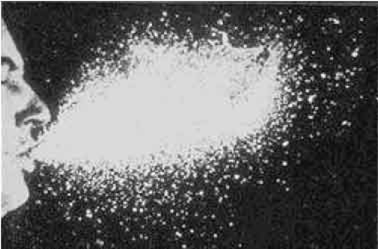аэрозоли рассеиваются на расстояние 2-3м и быстро оседают, мелкие же