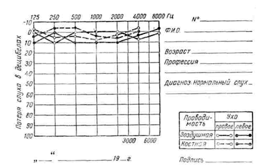 функциональная схема прибора (прил. А) и показана аудиограмма при нормальном