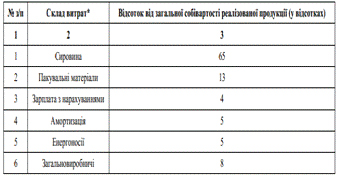 реалізованої продукції подана у таблиці 1.