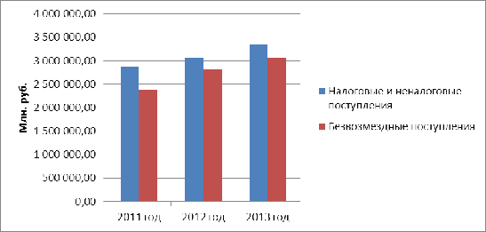 доходы в 2011 году составляли 2 870 452,29 млн. руб., то уже в 2013 году