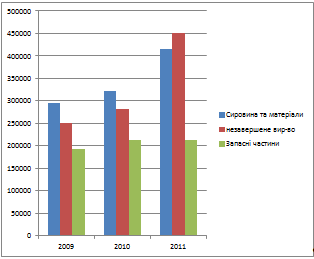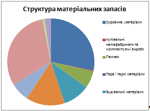 матеріальних запасах припадають на такі елементи: сировина та матеріали
