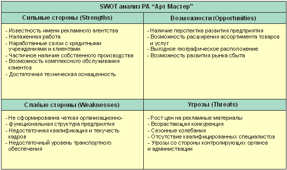 2.2 SWOT - анализ рекламного агентства "Арт мастер"