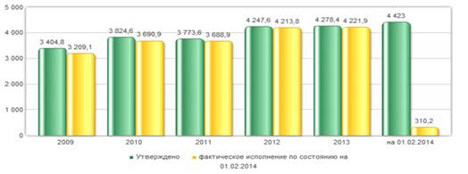 бюджета в 2014 году по сравнению с предыдущим годом на 3,4%. Но в реальном