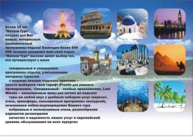 разработан макет рекламного проспекта для туристической кампании «Натали турс»