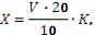 К - поправочный коэффициент к титру 0,1 н раствора гидроокиси
