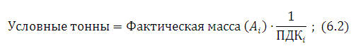 Расчет условных тонн осуществляется по следующей формуле (6.2):