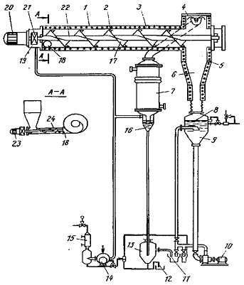 16-накопичувач, 17-шнек для подачі сировини,18-отвір для завантаження шламу,