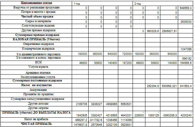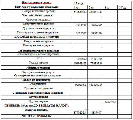 которых, сделаны и представлены в таблицах расчетные показатели деятельности