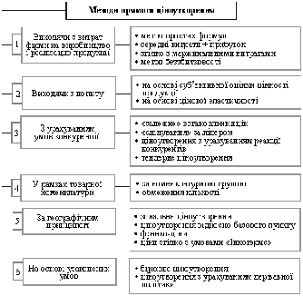 різних товарів, територій, груп споживачів, каналів розподілу, діяльності на