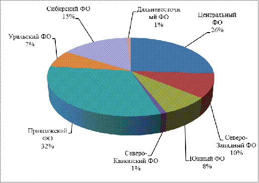 Приволжский федеральный округ, доля которого составила 20% от общего объема