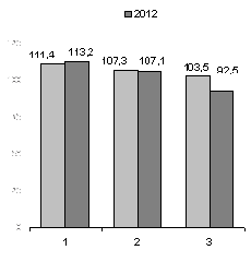 относительно третьего квартала 2011 года на 2,9%, относительно второго квартала
