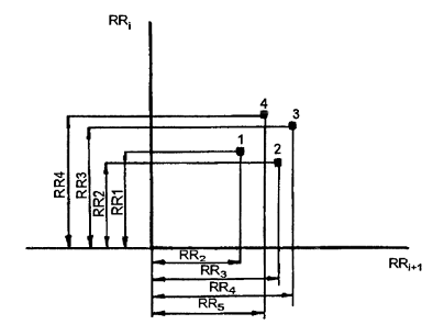 R-R (рис. 17). Каждый предыдущий интервал наносится на ось ординат (RRi), а