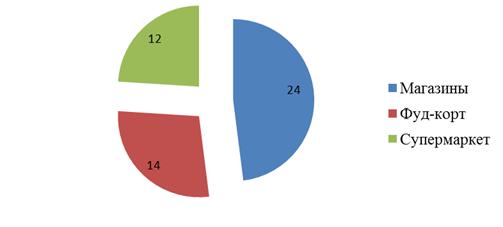 составляет 25 000 кв. м. В нем находиться 59 организаций. Помимо магазинов