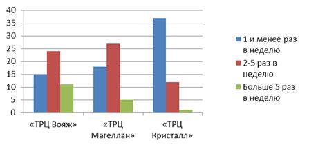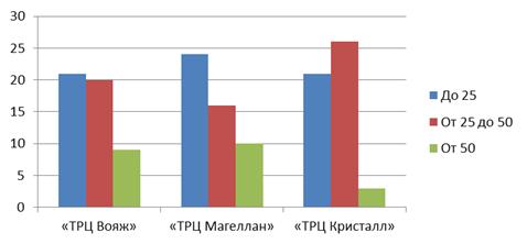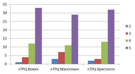 ТРЦ Вояж, следом за ним идет «ТРЦ Кристалл» и завершает «ТРЦ Магеллан». Разница