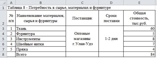 экономической эффективности открытия магазина по продаже тканей, фурнитуры и