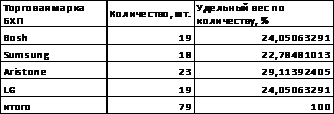 Таблица 1. Соотношение ассортимента бытовых холодильных