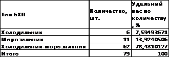Таблица 2. Соотношение ассортимента бытовых холодильных приборов в