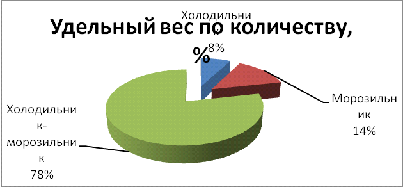 Наибольший удельный вес ассортимента бытовых холодильных приборов