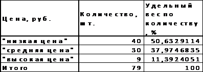 следующие данные: «низкая цена» ̶ 800000-1000000 руб.; «средняя цена» -