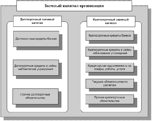 Заемный капитал, используемый организацией, характеризует в совокупности