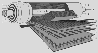 Рисунок 9. Принципиальная конструкция спирально-навитого модуля.1 -