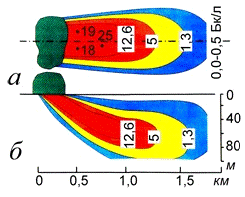 большие расстояния. Его выпадения практически ограничились 30-километровой