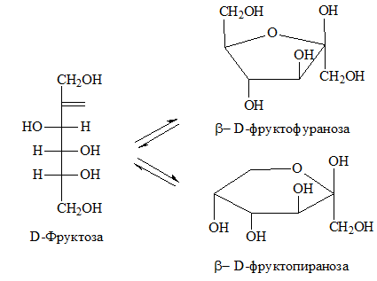 мало отличающегося от глюкозы, содержание фуранозной и открытой форм в 10-15