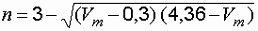 Безразмерный коэффициент n определяется, исходя из величины Vm,
