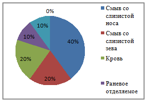 биоматериала, 10 из них оказались положительными. В 18% проб слизистой носа