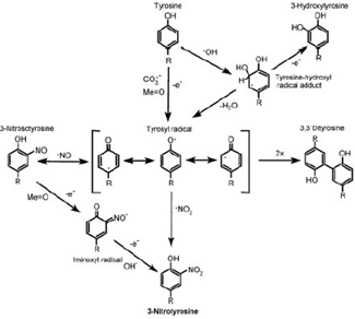 у результаті якої утворюється пероксинітрит (ONOO-). ONOO- є потужним