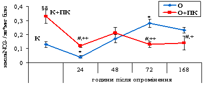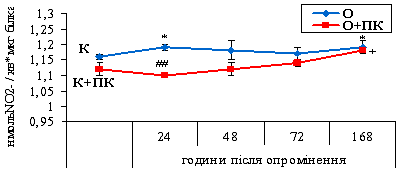 стабільних метаболітів оксиду нітрогену у периферичній крові щурів за