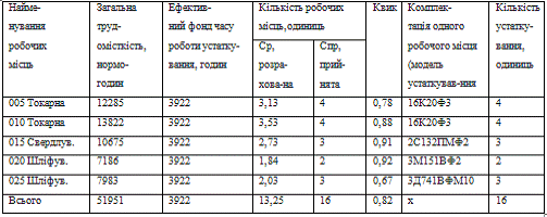 для нормального завантаження устаткування; робочі місця розташовуються
