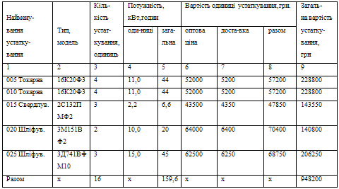 загальної вартості устаткування)