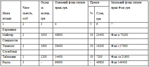 Розрахунок фонду оплати праці