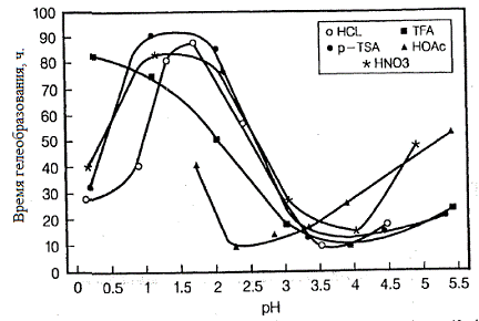 варьируется отношение H2O/Si m = 1-50 и концентрации кислот или оснований от 0,01 до 7 М,