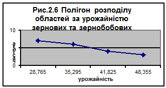 відрізняється від нормального, а ряд розподілу областей за урожайністю зернових