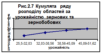 приймається, тобто ряд розподілу областей за виробництвом зернових та
