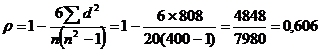Обчислений коефіцієнт кореляції рангів свідчить про