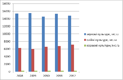 та 2015 роки, вся посівна площа збільшилась з 24254,87 до 25853,7; посівна площа