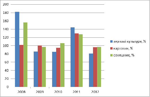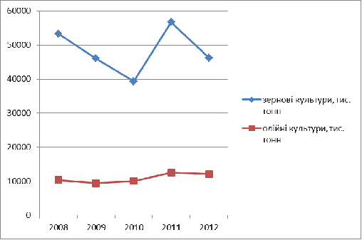 з 29,7 до 33,12 ц з 1 га. Динаміка виробництва технічних культур по Україні у