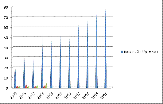 чином: валовий збір зріс з 46007,6 до 53190,47 тис. тонн, а урожайність зросла