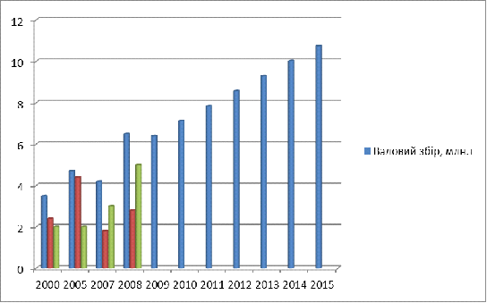 з 3457 до 7328,46 тис. тонн, а урожайність збільшилась з 12,2 до 16,19 ц з 1